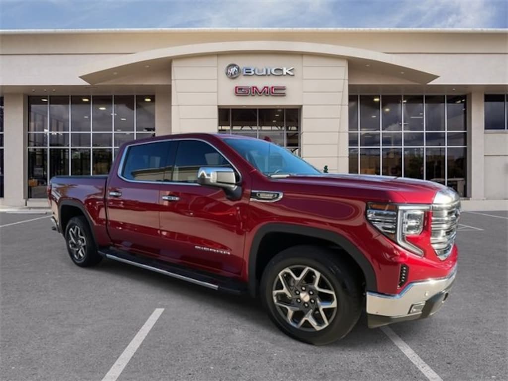 Recent Arrival! CARFAX One-Owner. Clean CARFAX. Certified. Volcanic Red Tintcoat 2023 GMC Sierra 1500 SLT RWD 10-Speed Automatic 3.0L I6 *ACCIDENT FREE CARFAX*, *ONE OWNER*, *MOONROOF / SUNROOF*, *LOCAL TRADE*, *STILL UNDER FACTORY WARRANTY*, *GMC CERTIFIED*, Sierra 1500 SLT, 4D Crew Cab, 3.0L I6, 10-Speed Automatic, RWD, Volcanic Red Tintcoat, Jet Black Leather, 20 Polished Aluminum Wheels, Chrome Wheel To Wheel Assist Steps, Hitch Guidance, Navigation System, ProGrade Trailering System, Sierra Safety Plus Package, SLT Convenience Package, SLT Preferred Package, SLT Premium Plus Package, Spray-On Pickup Bed Liner w/GMC Logo, Trailering Package. It's a DIFFERENT WAY of doing business in the Auto Industry. 24/29 City/Highway MPG GMC Certified Pre-Owned Details: