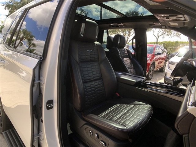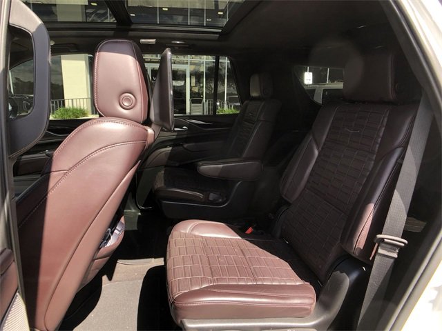CARFAX One-Owner. Clean CARFAX. Certified. Crystal White Tricoat 2022 Cadillac Escalade Sport Platinum RWD 10-Speed Automatic 6.2L V8 *ACCIDENT FREE CARFAX*, *ONE OWNER*, *NAVIGATION / GPS / NAVI*, *MOONROOF / SUNROOF*, *LOCAL TRADE*, *CAR BRAVO CERTIFIED*, LEATHER!, NAVY!, Dark Auburn With Jet Black Accents Leather, 1st 2nd & 3rd Row All-Weather Floor Mats (LPO), All-Weather Integrated Cargo Liner (LPO), Cooled Console w/Covered Storage, Gloss Black Escalade Nameplate (LPO), Interior Protection Package (LPO), Monochrome Cadillac Emblems (LPO), Navigation System, Night Vision, Onyx Package (LPO), Wheels: 22 12-Spoke Gloss Black Alloy (LPO). It's a DIFFERENT WAY of doing business in the Auto Industry. Cadillac Certified Pre-Owned Details: