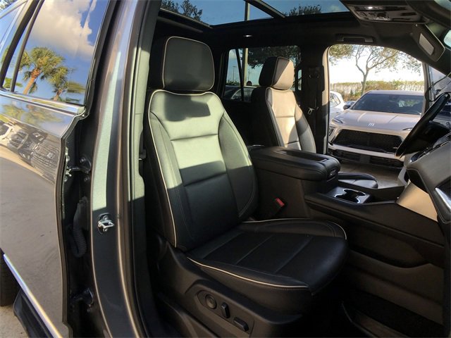 CARFAX One-Owner. Clean CARFAX. Certified. Satin Steel Metallic 2022 GMC Yukon SLT RWD 10-Speed Automatic with Overdrive EcoTec3 5.3L V8 *ACCIDENT FREE CARFAX*, *ONE OWNER*, *LOCAL TRADE*, *CAR BRAVO CERTIFIED*, LEATHER!, SLT PREMIUM PACKAGE, HD SURROUND VISION, 22 MULTI-SPOKE GLOSS BLACK, SECOND ROW BUCKET SEATS, POWER, SLT LUXURY PACKAGE, Yukon SLT, EcoTec3 5.3L V8, 10-Speed Automatic with Overdrive, RWD, Satin Steel Metallic, Jet Black Leather, Dual-Pane Panoramic Power Sunroof, SLT Luxury Package, SLT Premium Package. It's a DIFFERENT WAY of doing business in the Auto Industry. Odometer is 20776 miles below market average! Certification Program Details: CarBravo Benefits: ?? Courtesy Transportation: Stay on schedule with courtesy transportation1 if your vehicle needs a warranty repair. Weâll always make sure you have alternative transportation or reimburse you for a temporary vehicle. ?? 1-month trial2 of OnStar® and Connected Services or OnStar GuardianTM app3: Enjoy OnStar safety services like Automatic Crash Response, Roadside Assistance and the OnStar Guardian app. Plus, stay connected with in-vehicle data and your vehicleâs mobile app. ?? 24-Hour Roadside Assistance: If you need us, help is just a phone call away with roadside assistance4 anytime, day or night. ?? 10-day/500-mile exchange: If you donât absolutely love your purchase, bring it on back and exchange it for another one.5 ?? 3-month trial6 of SiriusXM®: 165+ channels in the car plus access to 350+ channels on the SXM App. Enjoy commercial-free music, performances and interviews, plus comedy, talk, sports & more. ?? Multi-point inspection: Enjoy peace of mind knowing that all CarBravo vehicles undergo a rigorous multi-point inspection. Also, before a CarBravo vehicle is listed or sold, dealers complete all safety recalls. You can also double-check the recall status of any vehicle at www.nhtsa.gov/recalls. Buy with confidence - The VERA Difference offers Quality Automobiles, a 3 Day Money Back Guarantee and 30-Day Vehicle Exchange Program. The Customer always Wins at VERA!